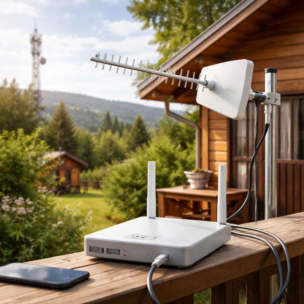 Логичное развитие мобильного сценария — установка внешней антенны или репитера. Это действительно может улучшить ситуацию, если проблема именно в уровне сигнала. Однако часто на даче ограничивающим фактором становится не мощность приёма, а пропускная способность базовой станции.