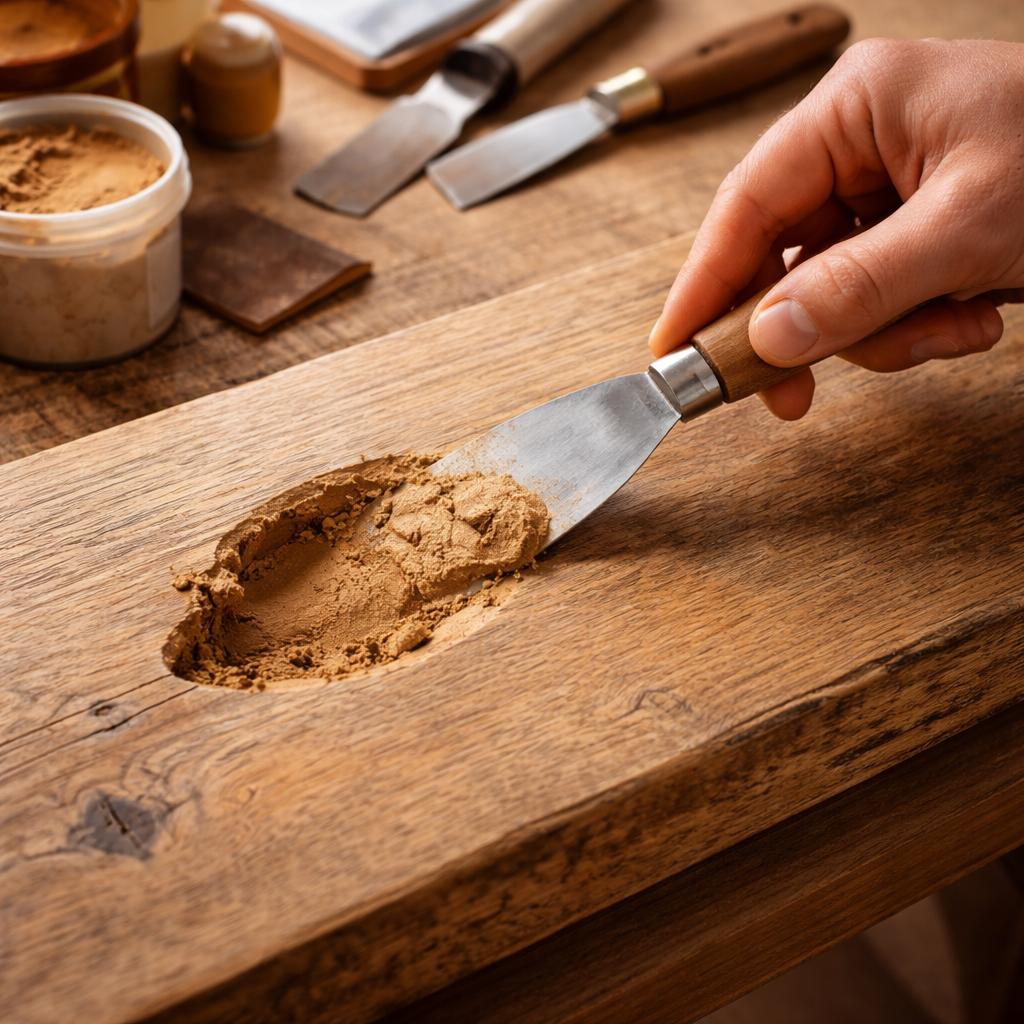 - Назначение объекта: Если это декоративный элемент мебели, можно использовать пасту или воск. Для структурных элементов лучше всего подходят эпоксидные составы или деревянные вставки.