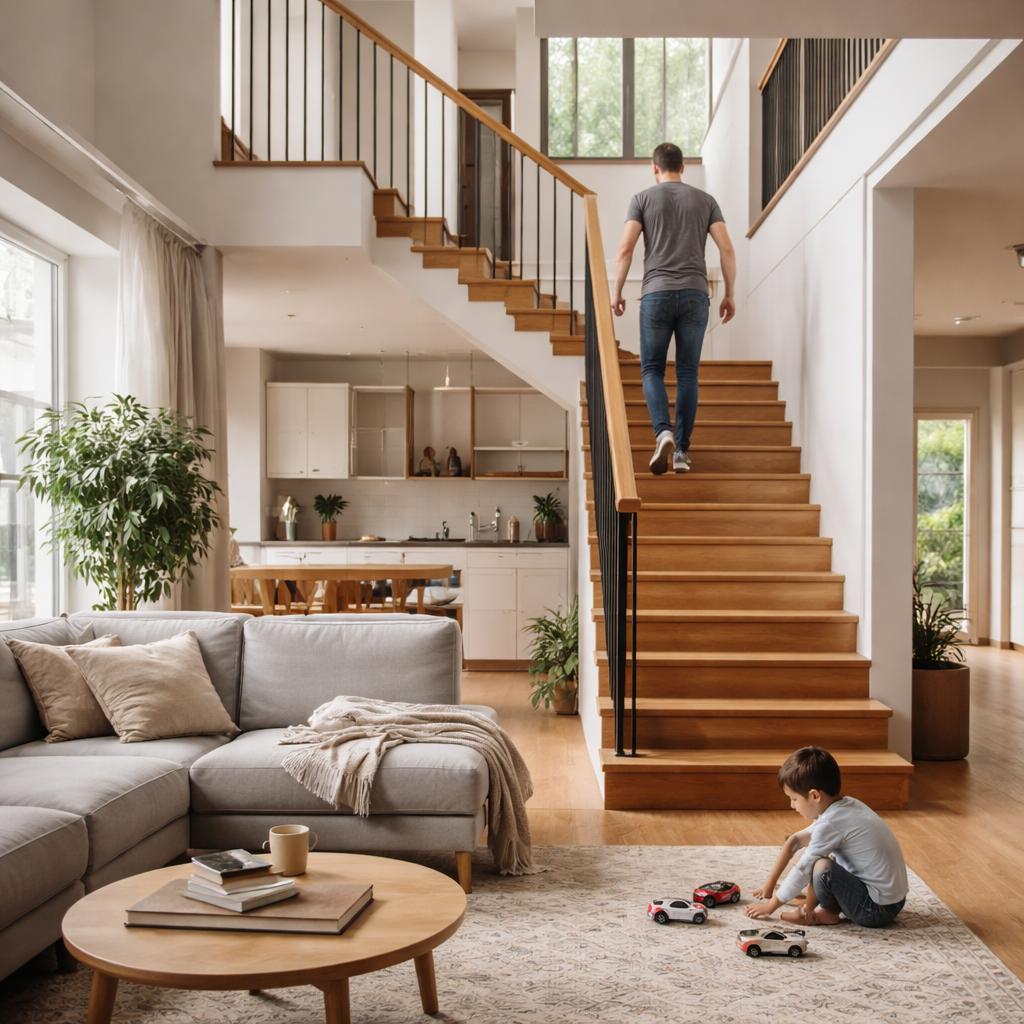 Когда лестница начинается в общем пространстве первого этажа, приватность второго этажа становится условной. Любой подъём или спуск происходит на виду. Это меняет поведение жильцов: кто-то начинает избегать лишних перемещений, кто-то чувствует себя «на сцене».