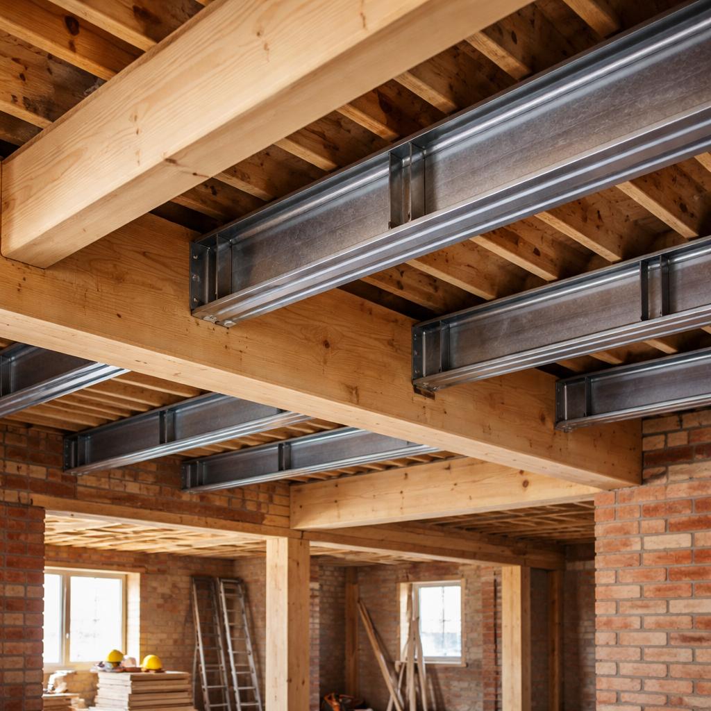 Межэтажные балки перекрытия выполняют несколько важных функций. Во-первых, они перераспределяют нагрузки от конструкций, таких как стены, крыша, мебель, а также людей, в разных частях здания. Во-вторых, они обеспечивают звуко- и теплоизоляцию между этажами, улучшая комфорт в помещении. И, наконец, балки являются основой для дальнейших отделочных работ, таких как укладка пола, установка подвесных потолков и т.д.