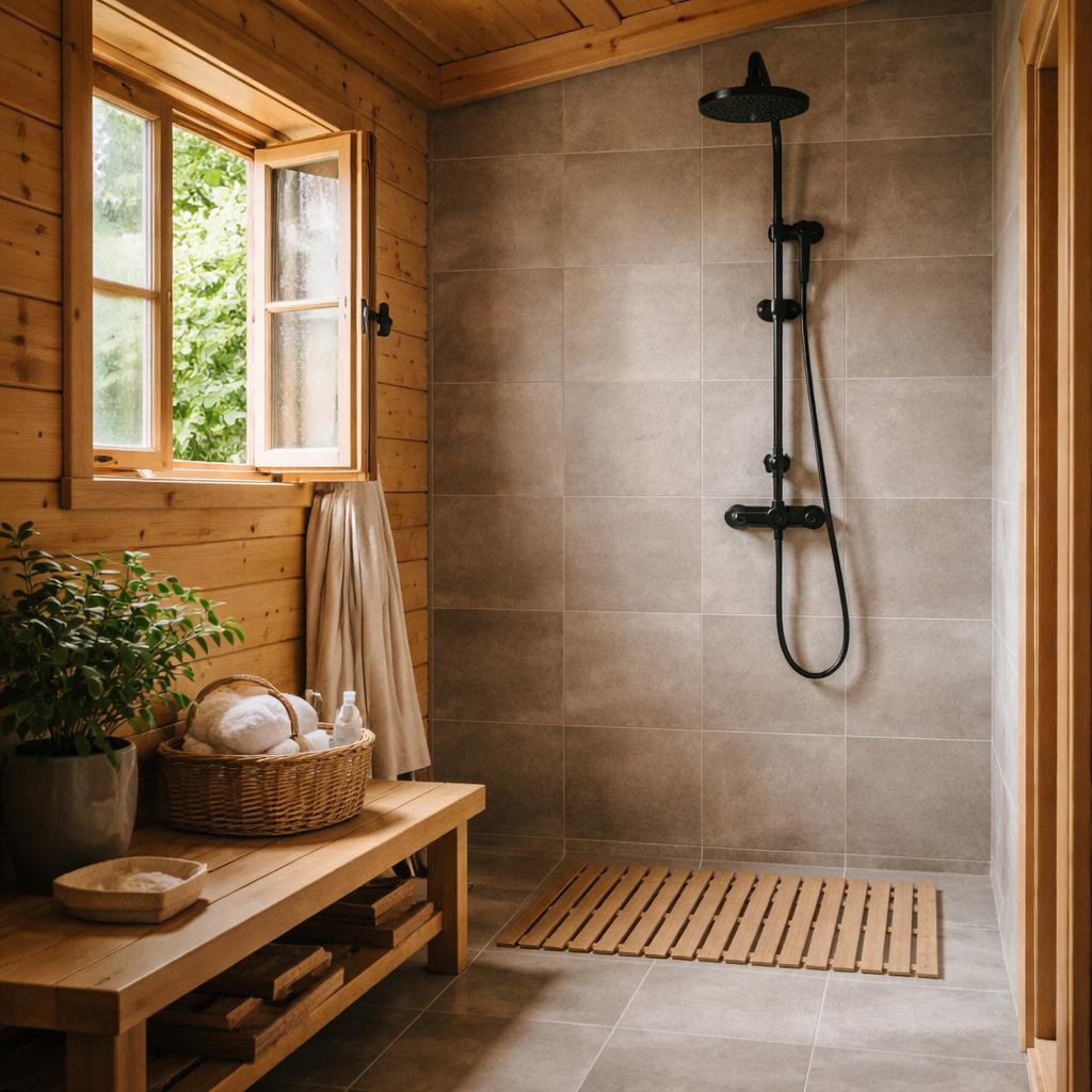 Иногда душевая становится частью бани или хозблока. Тогда отделка вынуждена работать в условиях повышенной температуры и пара, что резко меняет требования к материалам. Здесь особенно заметна разница между решениями, рассчитанными на квартиру, и теми, что действительно подходят для дачи.