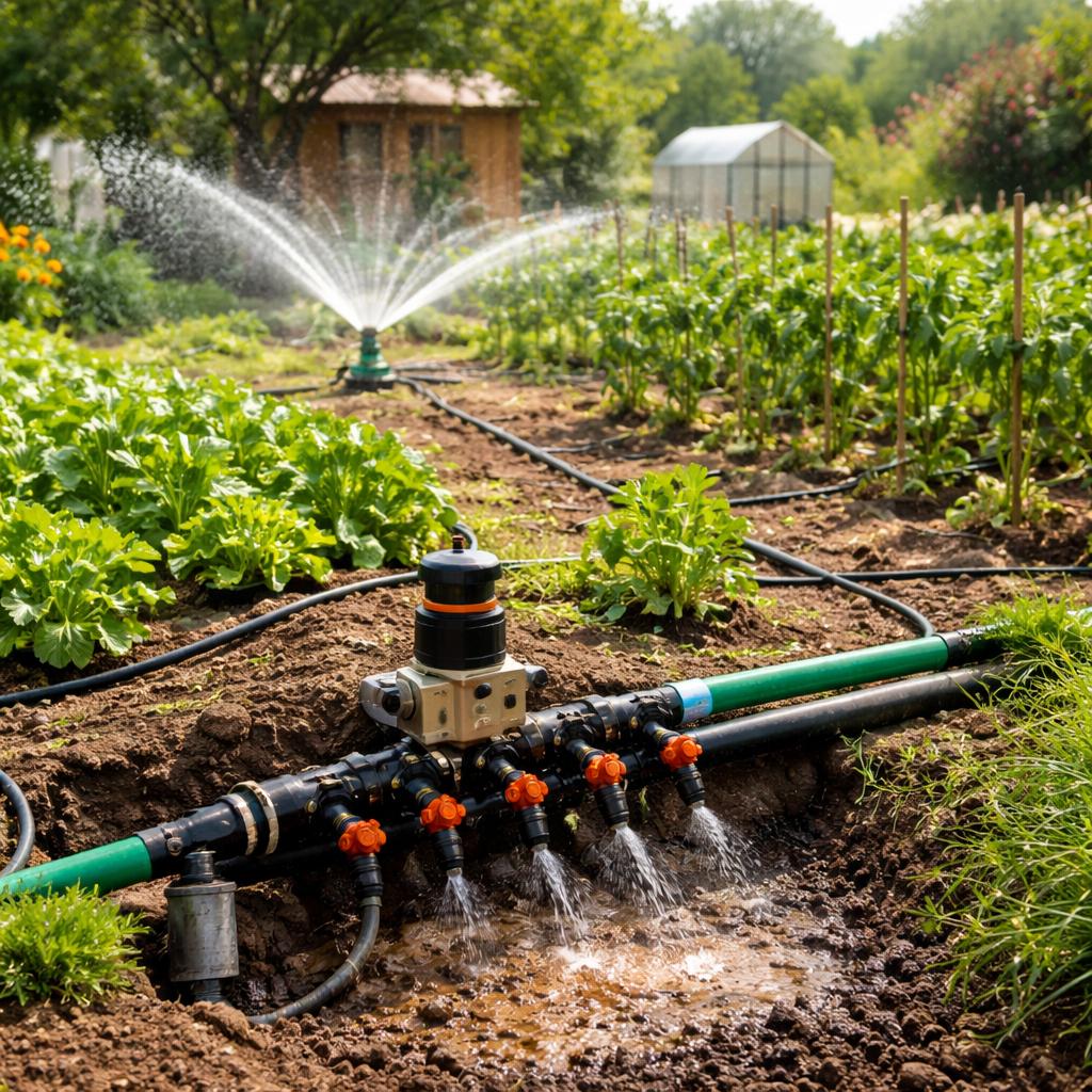- Поливочные устройства — дождеватели, капельные системы или шланги, которые распределяют воду по участку.